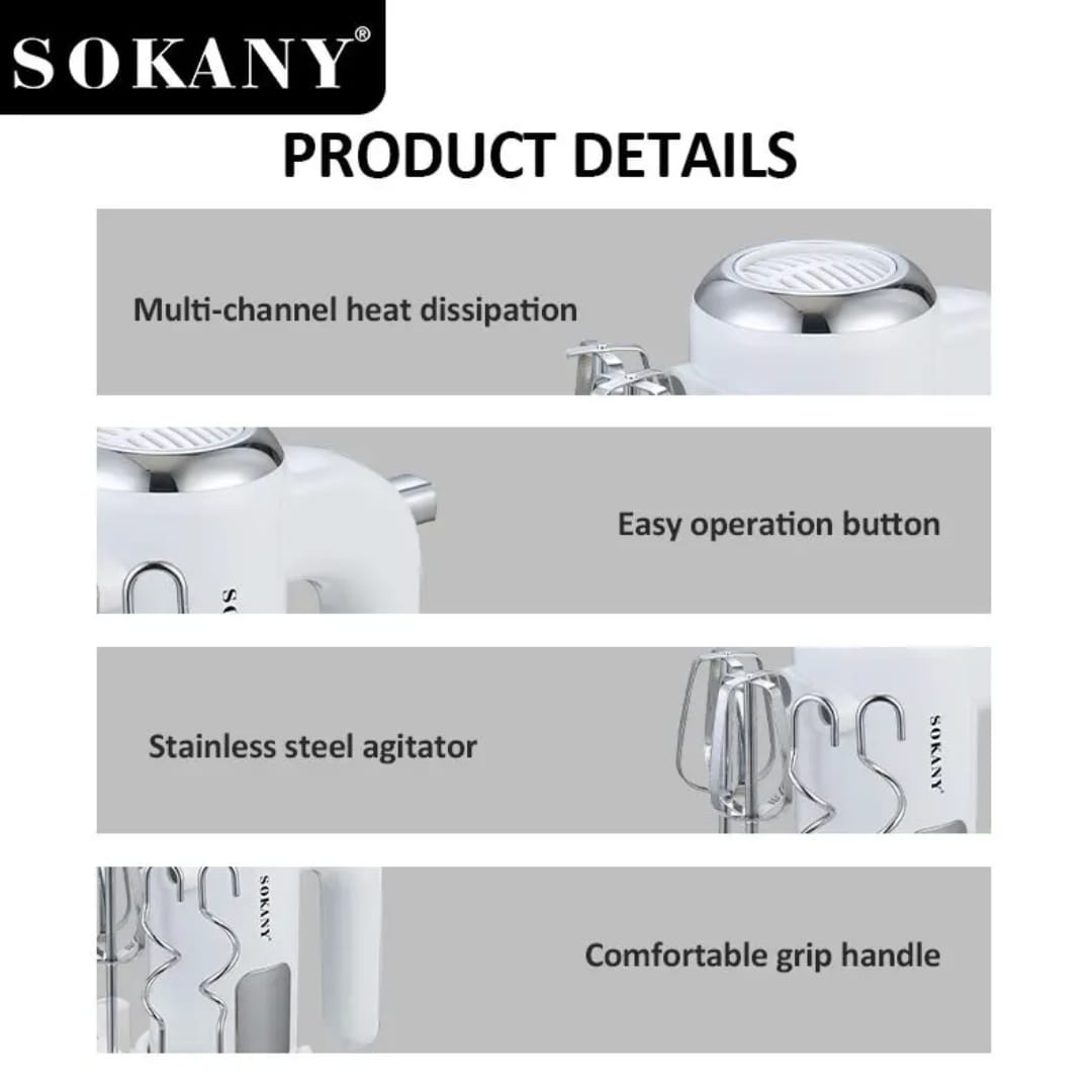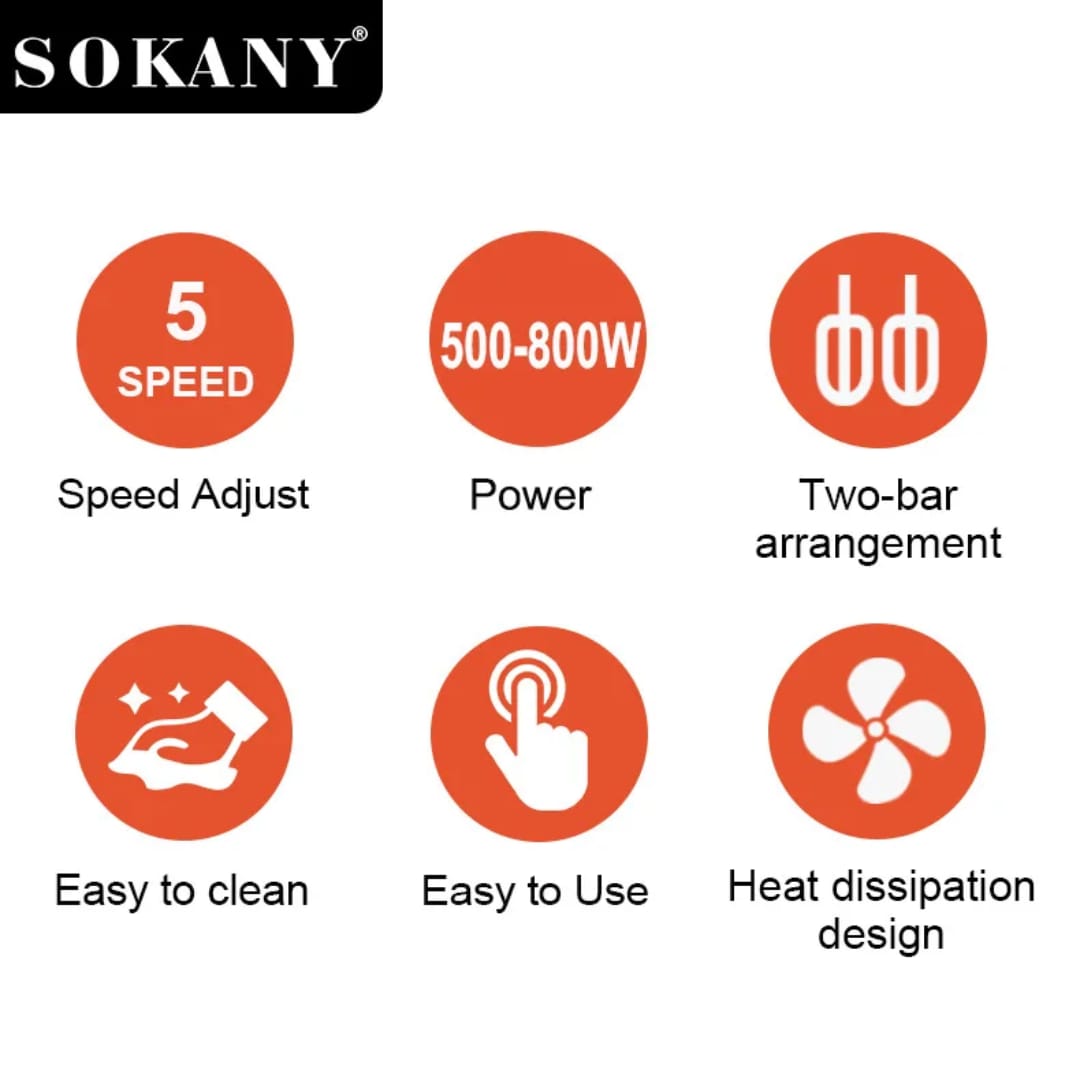 Simplifiez vos préparations avec le batteur électrique SOKANY 800W, conçu pour vous offrir rapidité, efficacité et résultats parfaits à chaque utilisation.